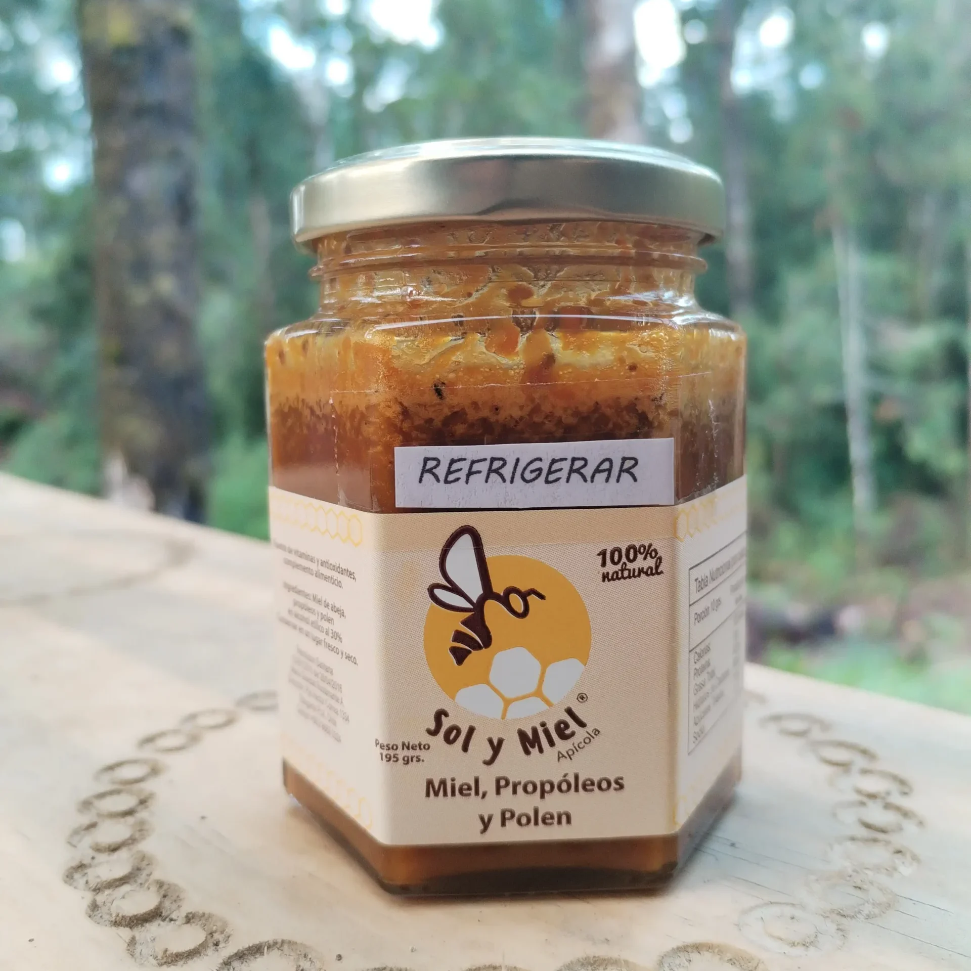 SUPERALIMENTO, MULTIVITAMINICO, MIEL PROPÓLEOS Y POLEN, ANTIBIÓTICO NATURAL, REFUERZA SISTEMA INMUNE.